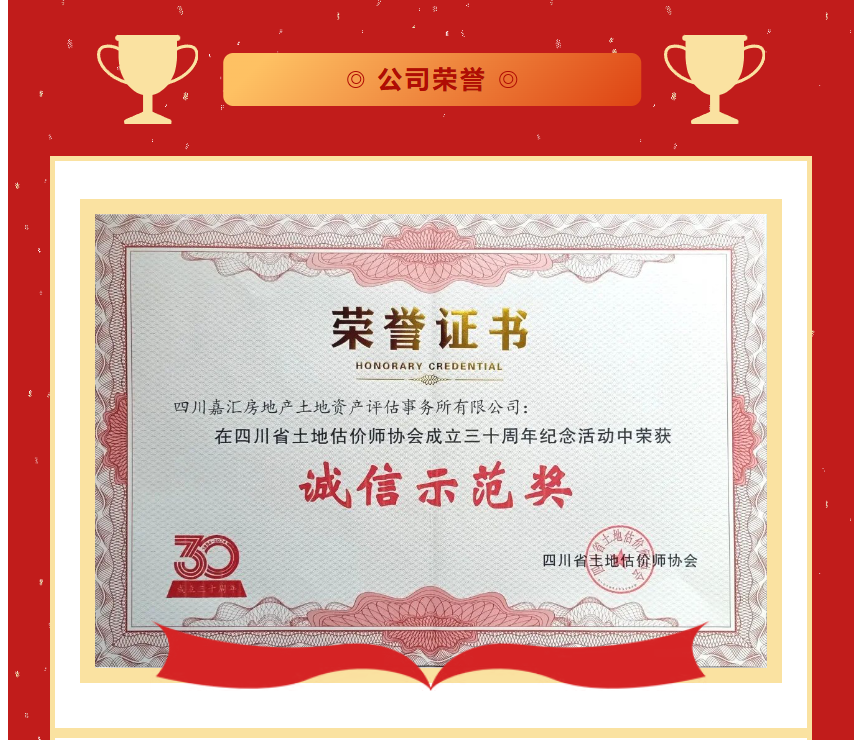 喜报||四川嘉汇评估所在“四川省土地估价师协会成立三十周年评优、征文活动”中荣获多个奖项