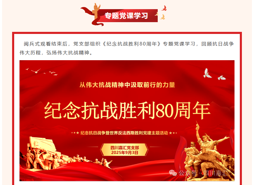 党建||“铭记抗战历史 传承红色基因”四川嘉汇开展抗战胜利80周年纪念活动