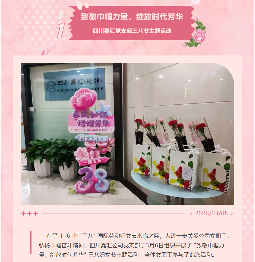 三八妇女节 | “致敬巾帼力量,绽放时代芳华”四川嘉汇党支部三八节主题活动